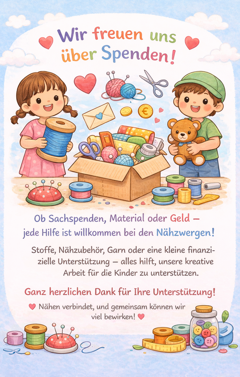 Jede Spende, ob Stoff, Zubehör oder finanzielle Unterstützung trägt dazu bei, dass noch mehr Kinder kreativ sein können 🌈